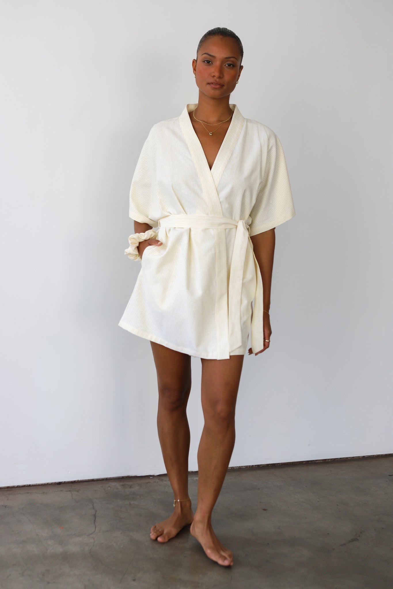 ["customizable","Fabric: Pinstripe","Fit: True to Size","new","pinstripe","short robe","spring26"]