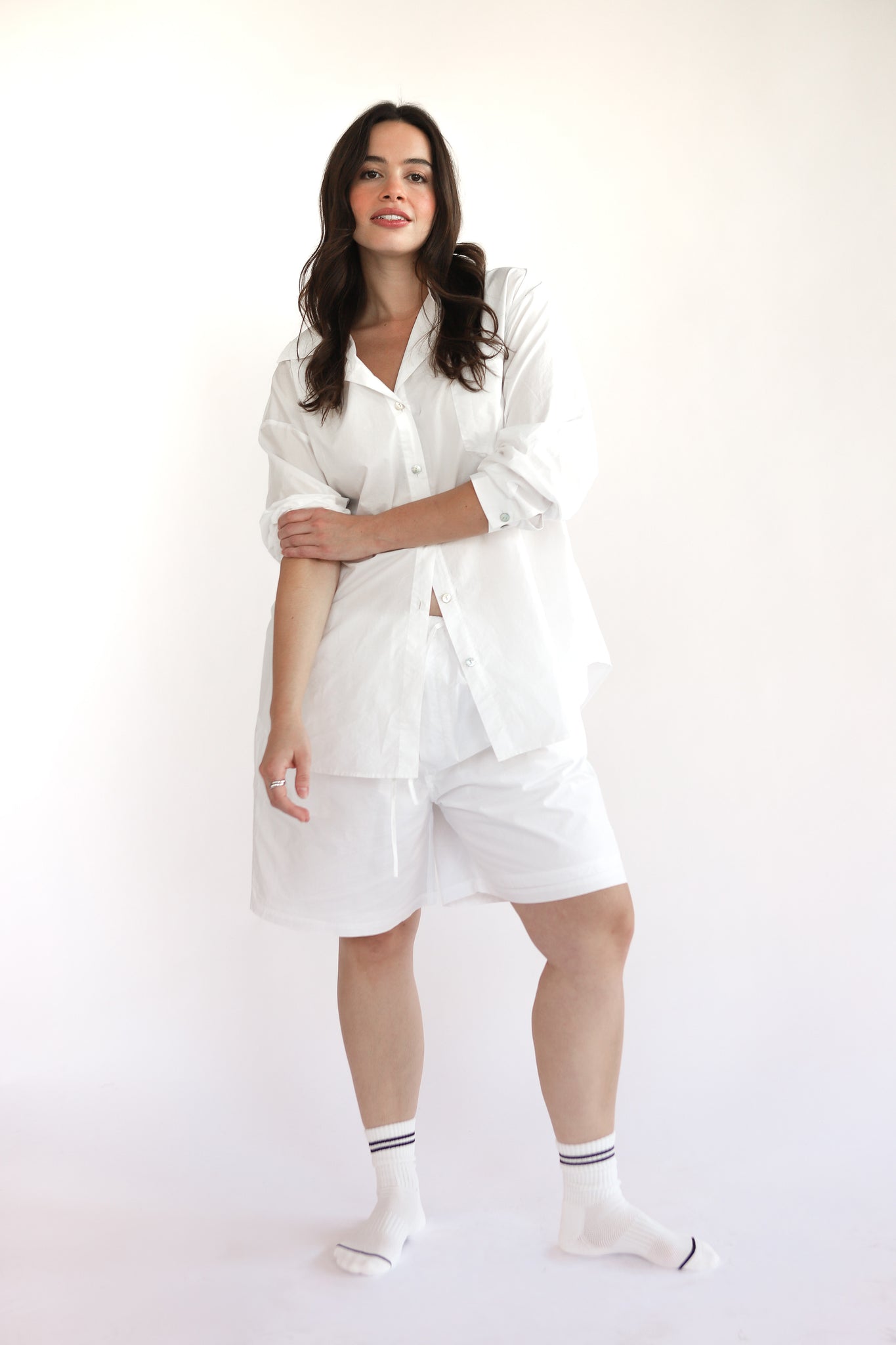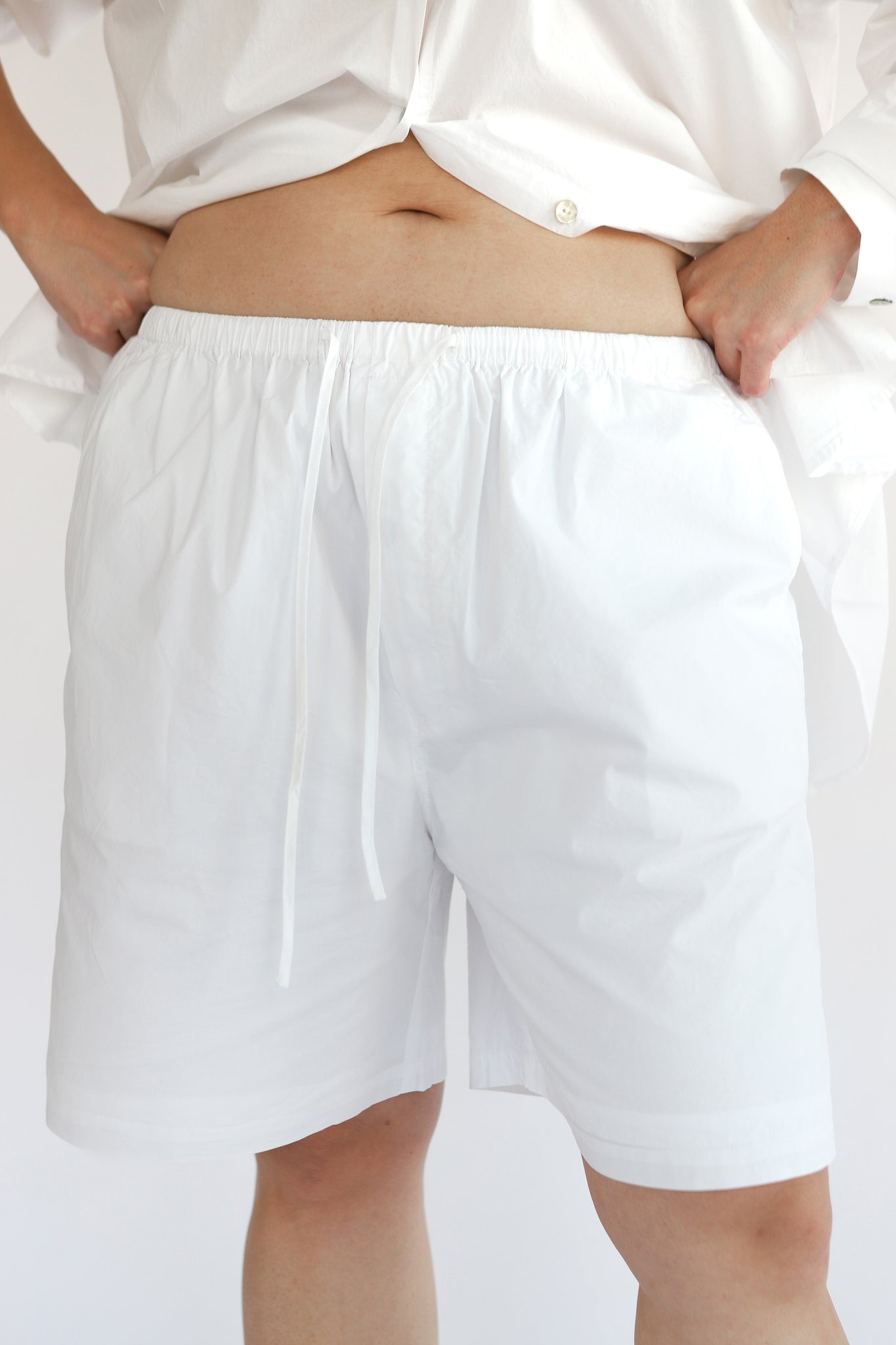 The Poplin Bermuda is made from 100% cotton poplin—light, airy, and crisp in all the right ways. Designed with a double self-lined finish, an elastic and drawstring waistband, these shorts deliver that perfectly undone, relaxed vibe. Wear them to bed, to brunch, or wherever the day (or your dreams) take you.