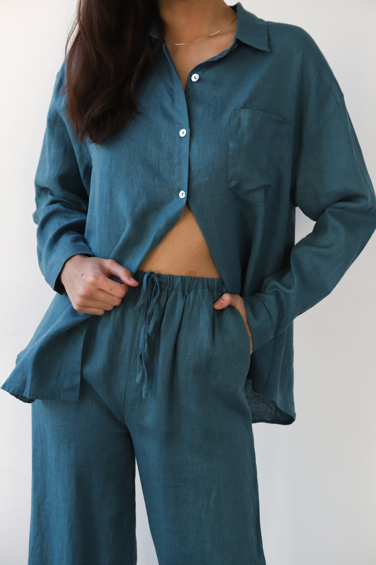 Effortless yet elevated, the 100% linen Drawstring Pant doesn't just lounge like a pro but travels like one, too. From the airplane to the pool, the hammock or the couch, these easy pull-on pants make everything a breeze.