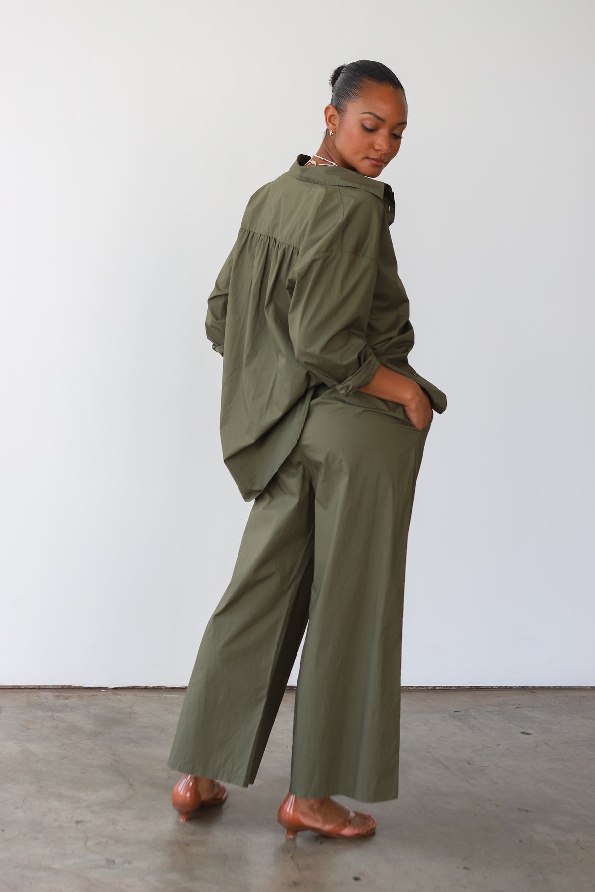 The Poplin Pant Set - Olive