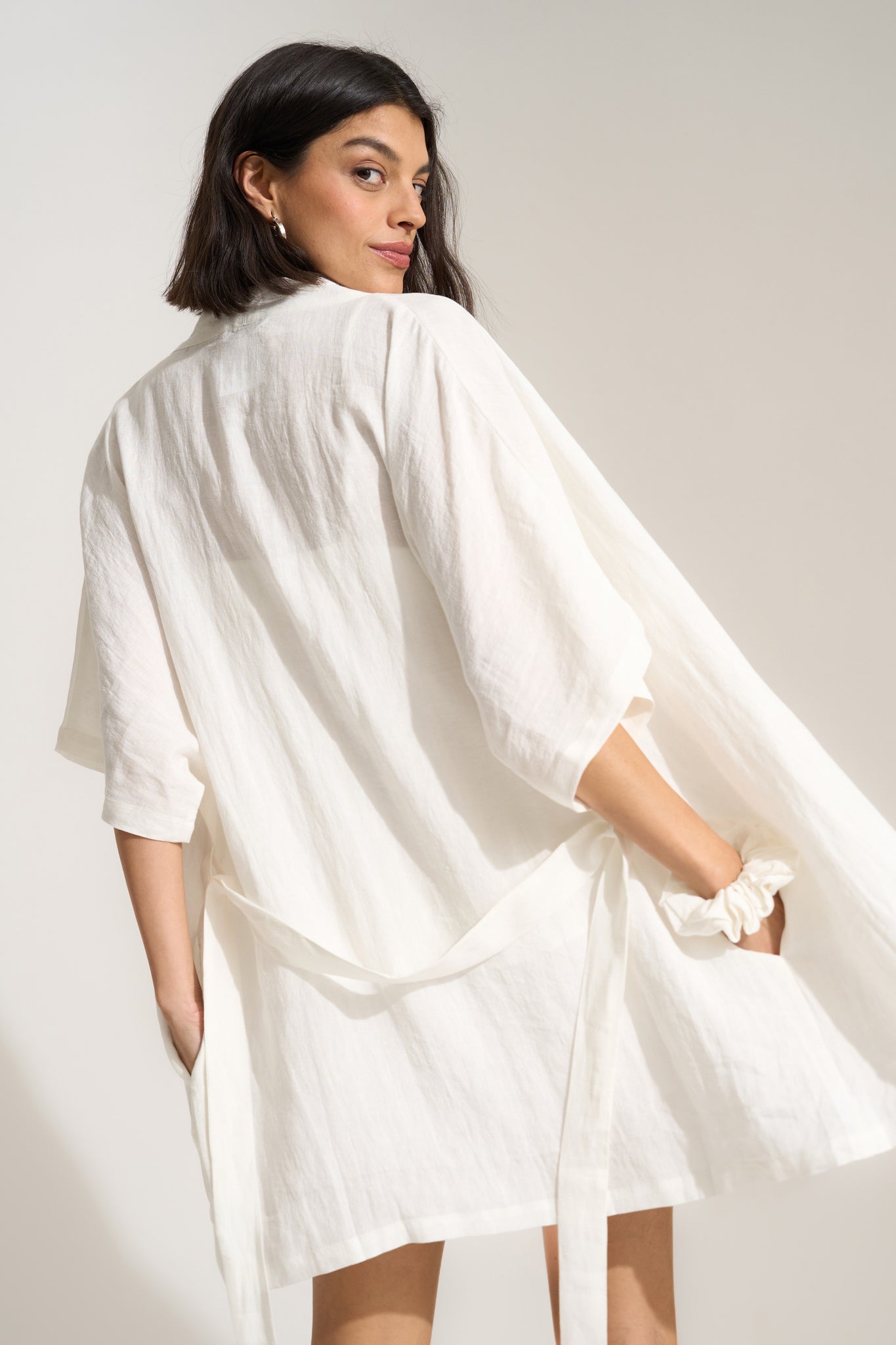 Your favorite robe now comes in 100% linen. While this natural, lightweight fabric offers a refined look, it's just as relaxed and low maintenance as the original Short Robe. Features include a loop at the neck for hanging, pockets, a matching tie belt, and interior ties that won't leave you uncomfortably exposed.